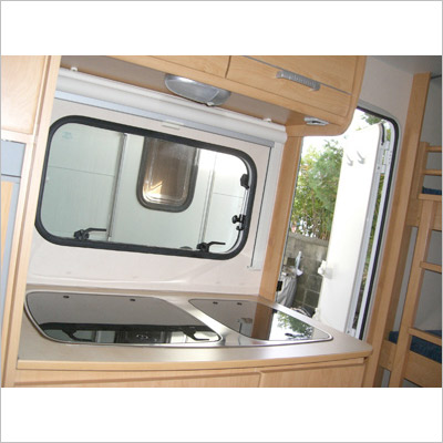 装備:FFヒーター、冷蔵庫150L、清水タンク、3口コンロ、トイレ、TVアーム、ベンチレーター
