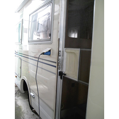 装備:発電機、ルーフエアコン、サイドオーニング、ソーラーパネル、電子レンジ、カーナビ、バックカメラ、ETC、液晶テレビ、BSアンテナ、シンク、三口コンロ、大型冷凍冷蔵庫、ヒーターボイラー、トイレ、シャワー、洗面、大型サンルーフ、外部収納庫