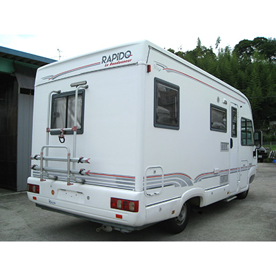 装備:発電機TEC29 ルーフエアコン、カーナビ、モニター、ETC、バックカメラ、電動ステップ、バイクキャリア、プルダウンベット、シャワー&洗面&トイレルーム、電子レンジ、温水、FFヒーター、サンルーフ、 外部シャワー、3Way冷蔵庫